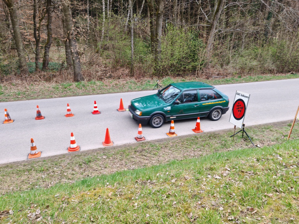 Ziel Slalomplatz bei Nandelstadt. Georg und Florian waren schon da und der Polo von Anhänger abgeladen. Reifen wechseln war angesagt. Mit lautem Getöse kam Michaelas Fiat inklusive Lena und Hund Toni um die Ecke gebraust. Kurz darauf trafen auch Thomas und Simon ein. Schnell jetzt aber zur Abnahme und Anmeldung. Den Parcours zu Fuß abgelaufen und dann mit dem Polo zum Start. Michaela, Georg, Florian, Rudi, Simon und dann der Thomas. Proberunde aussteigen der Nächste. 1.Lauf aussteigen dann der Nächste und dann Lauf 2 und Ende.